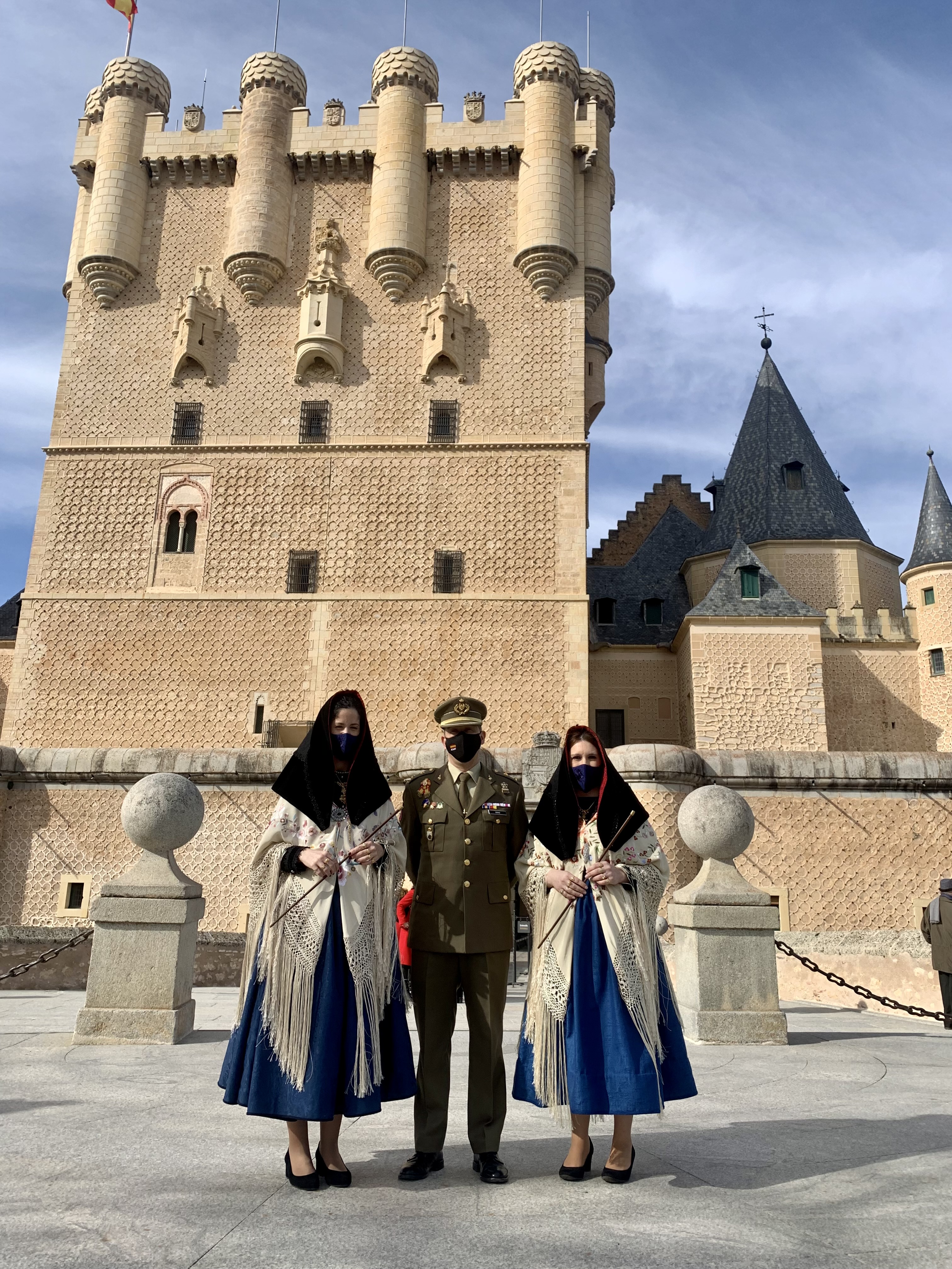 El teniente coronel Ángel Manuel Borao Bastardo, Teniente de Alcaide del Patronato del Alcázar, ha recibido a las alcaldesas en la fortaleza y ha podido conversar con ellas acerca de la fiesta de santa Águeda en Zamarramala y de cómo, tras no poderse celebrar en 2021 por la pandemia, ha debido adaptarse a la situación actual en su edición de 2022.