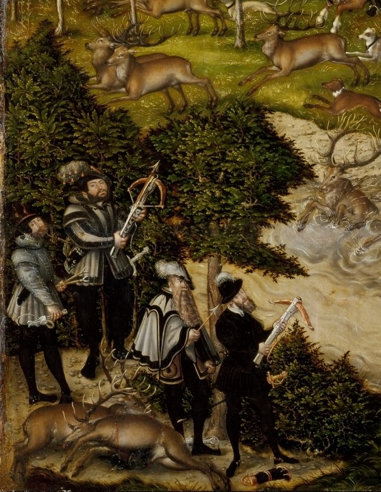 - Lucas Cranach el Viejo. Cacería en el castillo de Torgau en honor de Carlos V (fragmento). Óleo sobre lienzo. Museo del Prado.