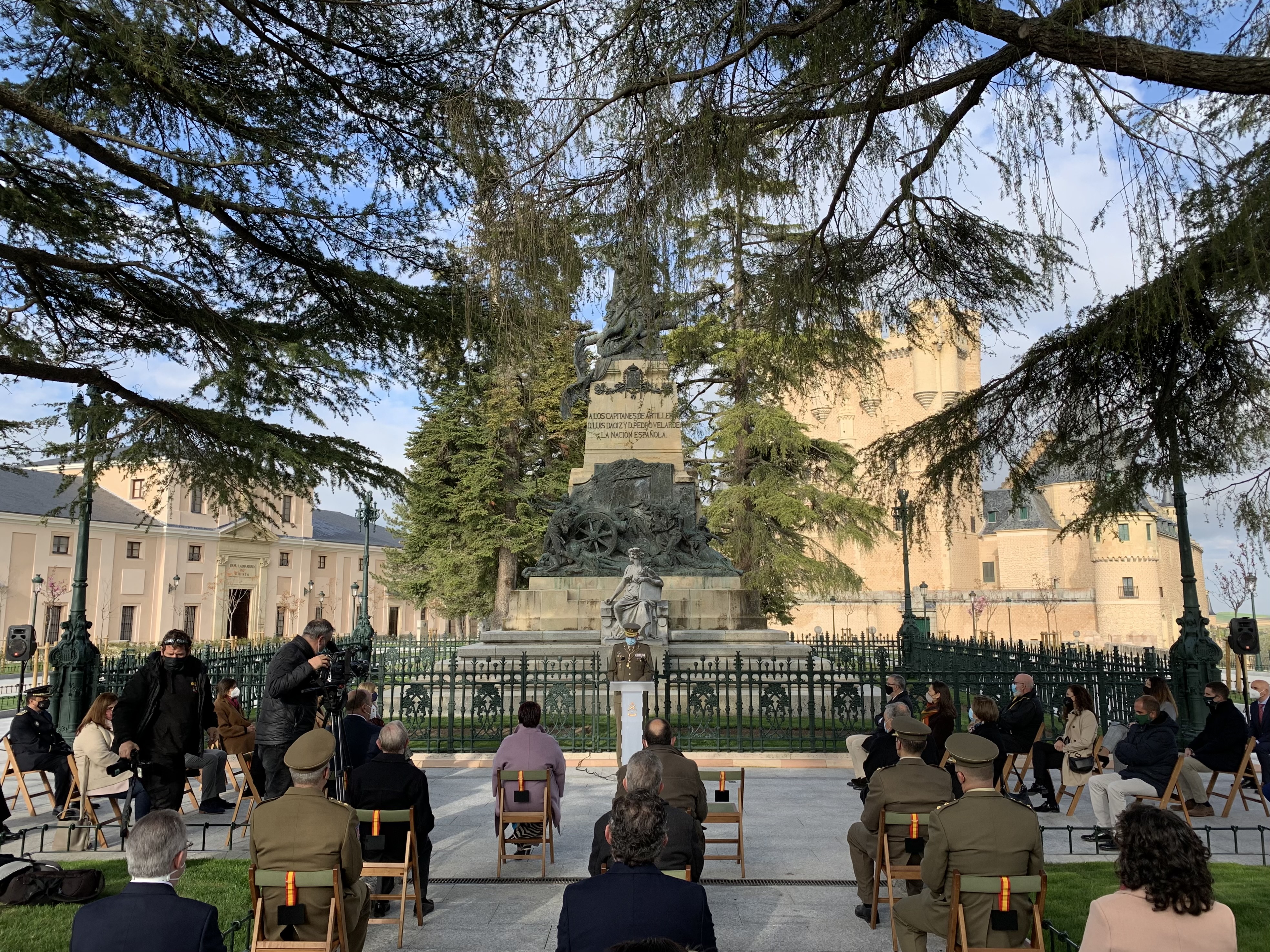 La plaza de la Reina Victoria Eugenia es, qué duda cabe, uno de los espacios más singulares y pintorescos de Segovia, no solo por su enclave privilegiado, por su entorno natural o por su rico pasado, sino por constituir el espacio físico de unión entre la ciudad y su Alcázar. Antesala de uno de los monumentos más reconocibles y visitados de España, es -y ha sido históricamente- lugar de encuentro entre segovianos y visitantes. Testigo mudo de la historia, este espacio protagonizó acontecimientos cruciales para el devenir de España: el sitio del Alcázar durante la guerra de las Comunidades, la lección inaugural del Real Colegio de Artillería y los ensayos previos al primer vuelo en globo, por citar algunos de los más destacados.