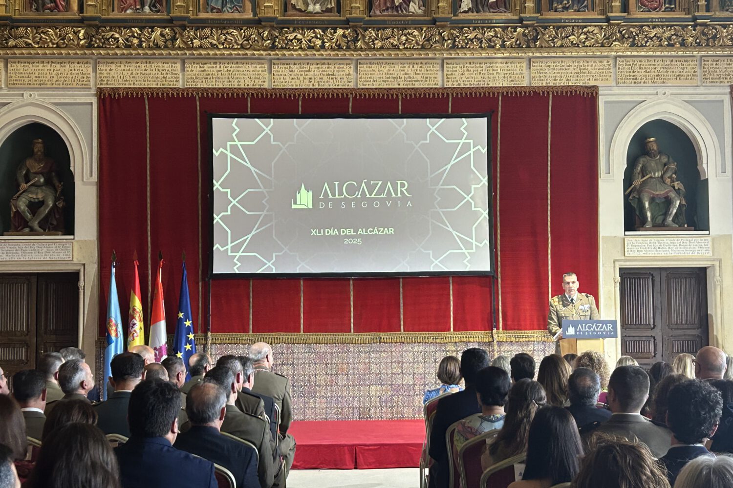 La Sala de Reyes, la más grande e impresionante del Alcázar de Segovia, ha acogido, un año más, la celebración del acto institucional del Día del Alcázar. En su discurso de bienvenida, el General Presidente del Patronato del Alcázar, Ignacio Ojeda García-Posada, transmitió su enorme ilusión por estar al frente del Patronato durante estos años, y agradeció a todos su asistencia. El Coronel Alcaide del Alcázar, Ilmo. Sr. D. Rafael de Felipe Barahona, fue el encargado de la lectura de la Memoria de Actividades del Patronato.